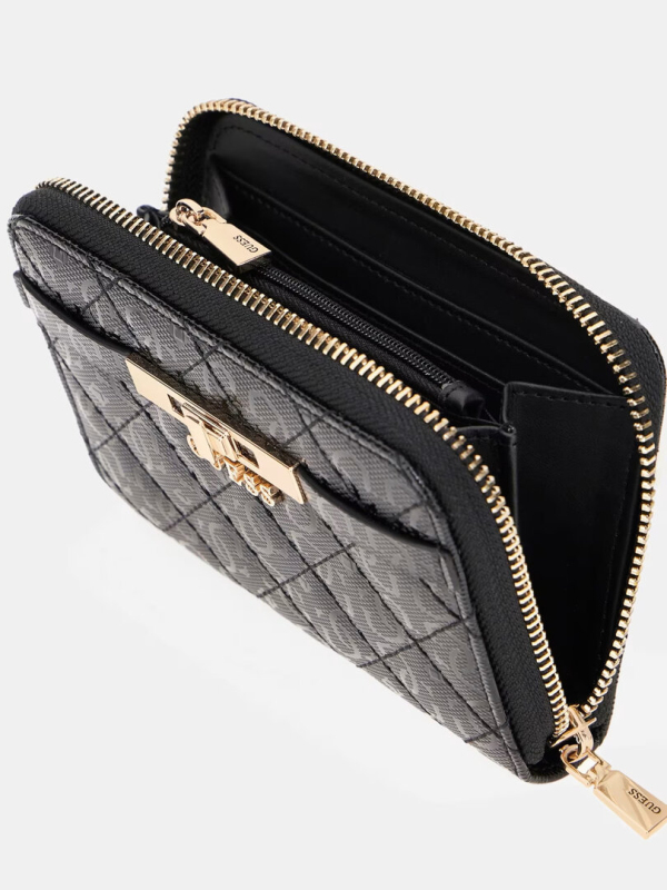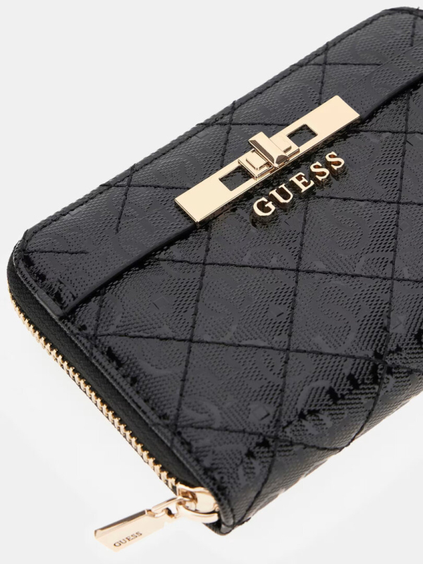 Vnější strana z umělé kůže. Zapínání na zip. Kovové prvky ve světle zlaté barvě. Lesklé logo 4G. Hlavní přihrádka s vnitřní kapsou na mince na zip. Přihrádky na kreditní karty. Kovový nápis s dekorativními detaily na přední straně. Rozměry: 9 × 4 × 3 cm.